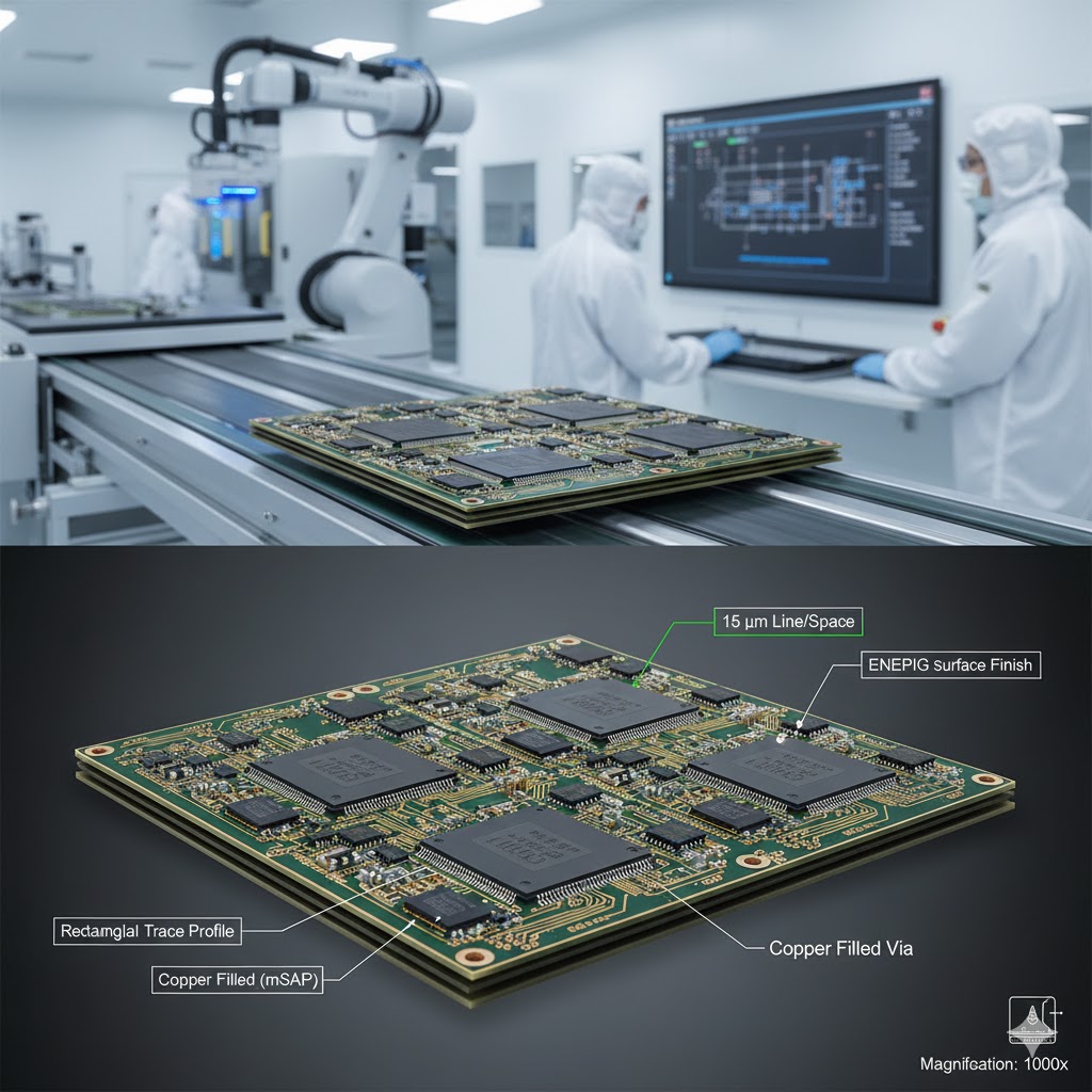 As semiconductor nodes shrink to $3nm$ and below, the interface between the silicon and the motherboard becomes a critical bottleneck. Substrate-Like PCB (SLP) utilizes the modified Semi-Additive Process (mSAP) to deliver circuit densities previously reserved for IC substrates. This technology is mandatory for systems requiring ultra-fine pitch components and extreme thermal/signal stability.