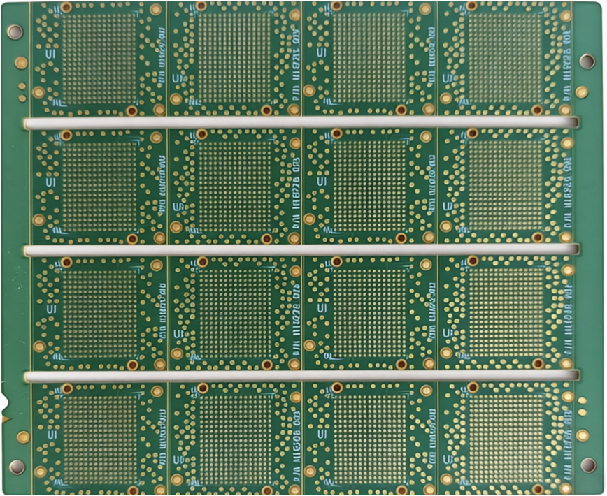 Mikro-Vias und Leiterbahn-/Abstandsflächen von nur 0,05 mm ermöglichen komplexe Routing-Verfahren für fortschrittliche IC-Gehäuse. Die perfekte Verbindung zwischen Chip und Hauptplatine für maximale Integration.