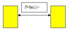 De manière générale, il existe des règles de routage et d'implantation, telles que : l'espacement minimal entre les composants discrets comme les condensateurs et les résistances doit être d'au moins 10 mils, 30 mils étant l'espacement recommandé. D'autres règles d'espacement existent également, comme illustré dans la figure ci-dessous.